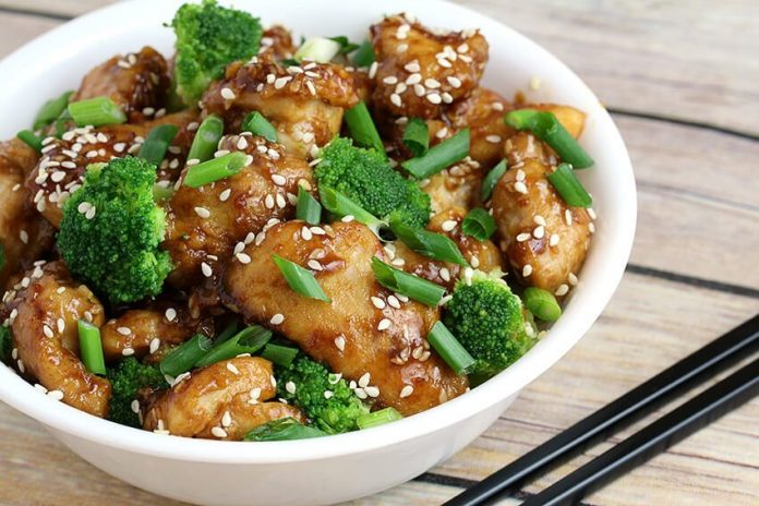 - Retirar el pollo de la sartén. Servir con unas semillas de sésamo espolvoreadas por encima, si lo desea.